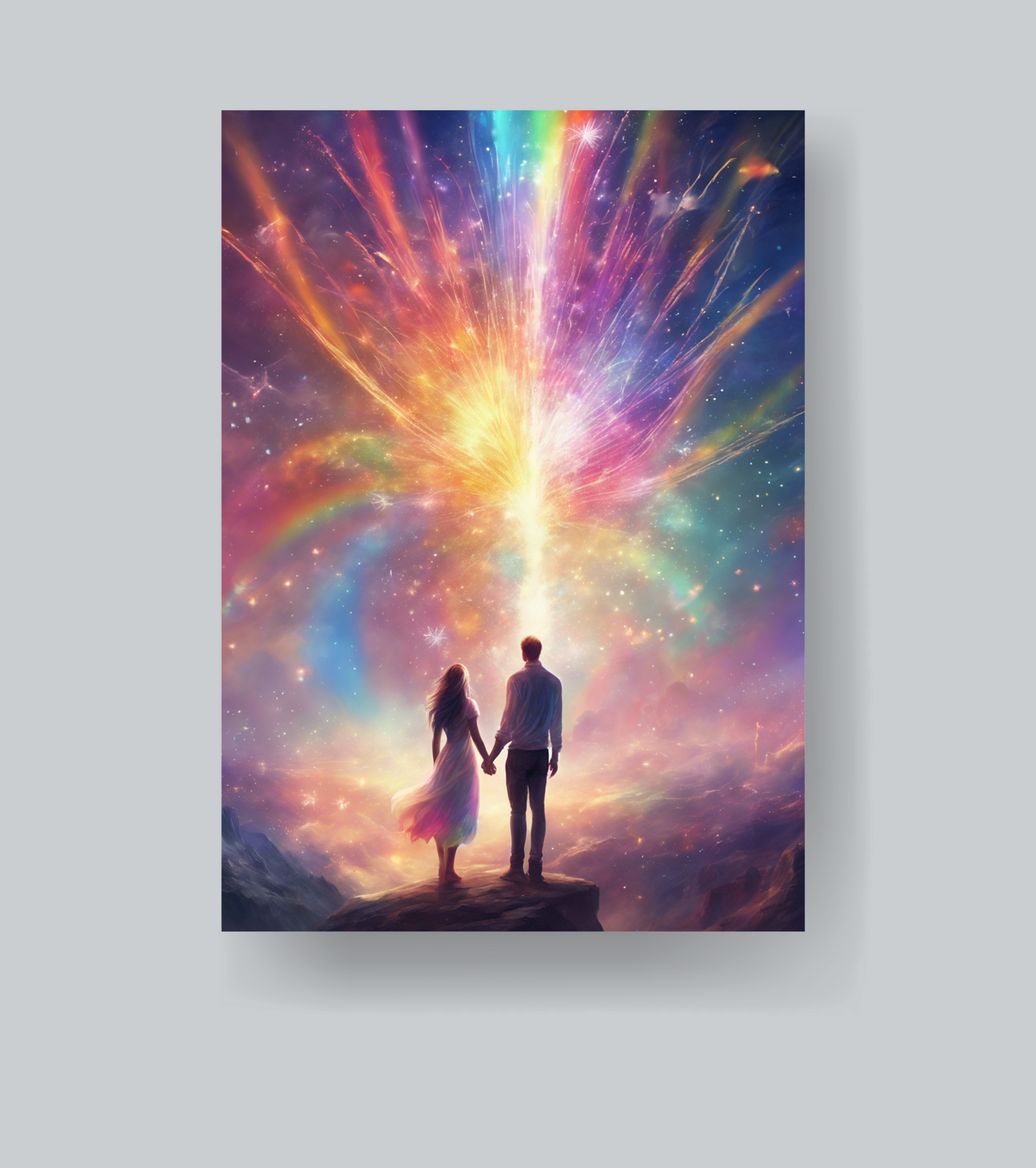 V nekonečném tanci vesmíru se rodí jedinečná energie, která spojuje duše, srdce a mysl – energie Partnerství. Tento obraz zachycuje harmonii dvou bytostí, které se setkávají na hlubší úrovni, vzájemně se doplňují a společně vytvářejí něco většího, než by mohly samy. Je to symbol rovnováhy, kde se síla a něha proplétají, a kde jednota vytváří neomezené možnosti růstu.