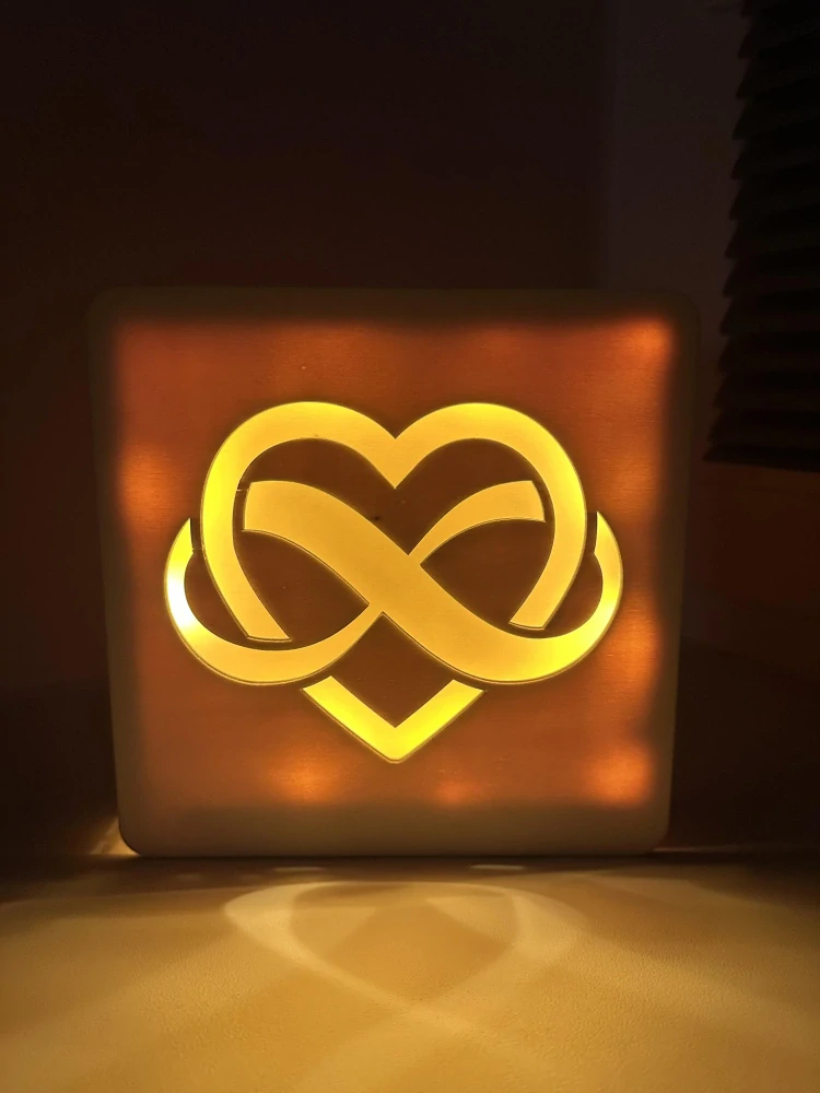 Symbol lásky, která nezná hranic. Tato jemně zářící lampička s motivem srdce v nekonečnu připomíná věčné spojení, hluboké pouto a sílu bezpodmínečné lásky. Skvěle doplní váš domov, ložnici nebo meditační prostor.