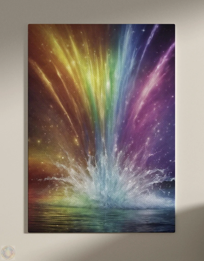Tento obraz zachycuje okamžik, kdy se ze země dere proud nespoutané energie – syrová, živá a nezastavitelná síla, která probouzí vše kolem k životu. Představ si pramen, jenž dlouho dřímá v hlubinách, a pak s mohutnou silou vytryskne na povrch. Nese s sebou čistou esenci života – sílu růstu, proměny a nových začátků. Stejně jako v přírodě gejzír vody probudí krajinu k životu, tak i tento obraz přináší do prostoru pulzující energii, která podpoří tvou vnitřní sílu a chuť tvořit.
